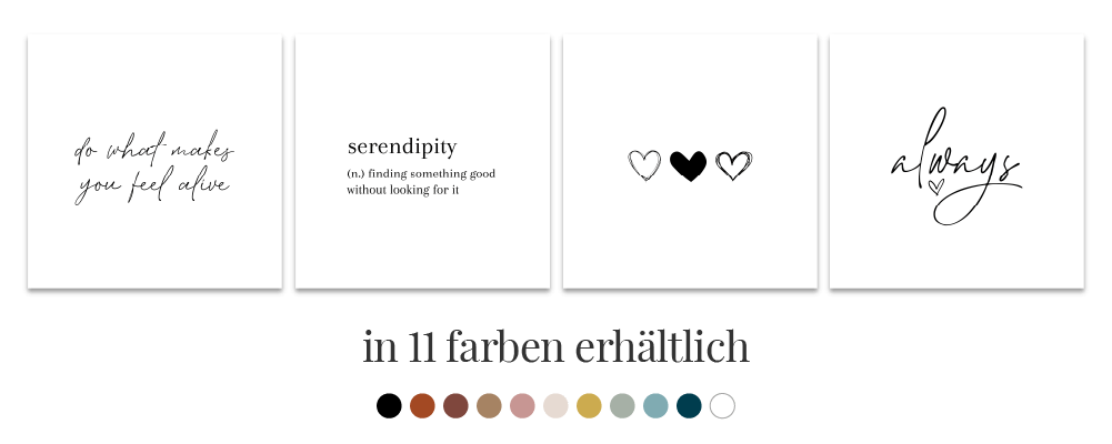 - Bei einem Design im Wert von mindestens € 50,- bekommst Du eines unserer vier Liebeszitate geschenkt.